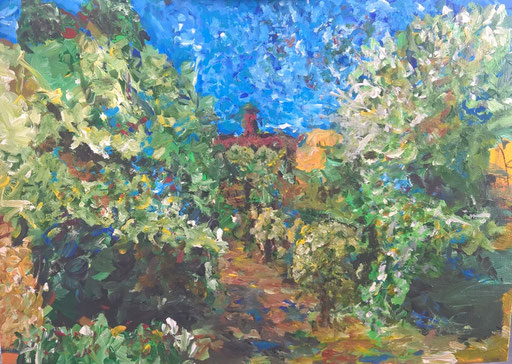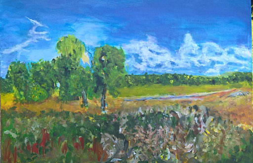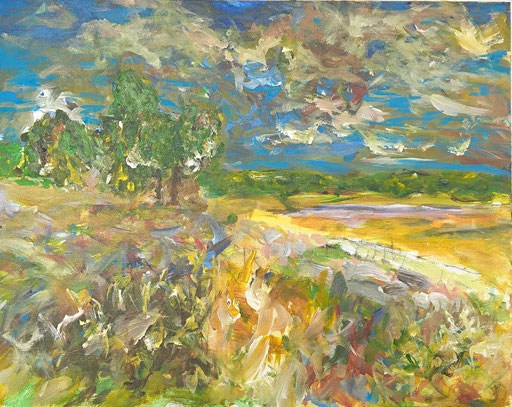 Mit meinen Bildern möchte ich freudige, sinnenfrohe Momente bewahren-, aus mir heraus malen, die Bilder und die Schaffensprozesse (viel Plein-Air im südlichen Brandenburg-Blankensee, Seddiner See, Schwielowsee, Kleinmachnow u.a.) präsentieren-